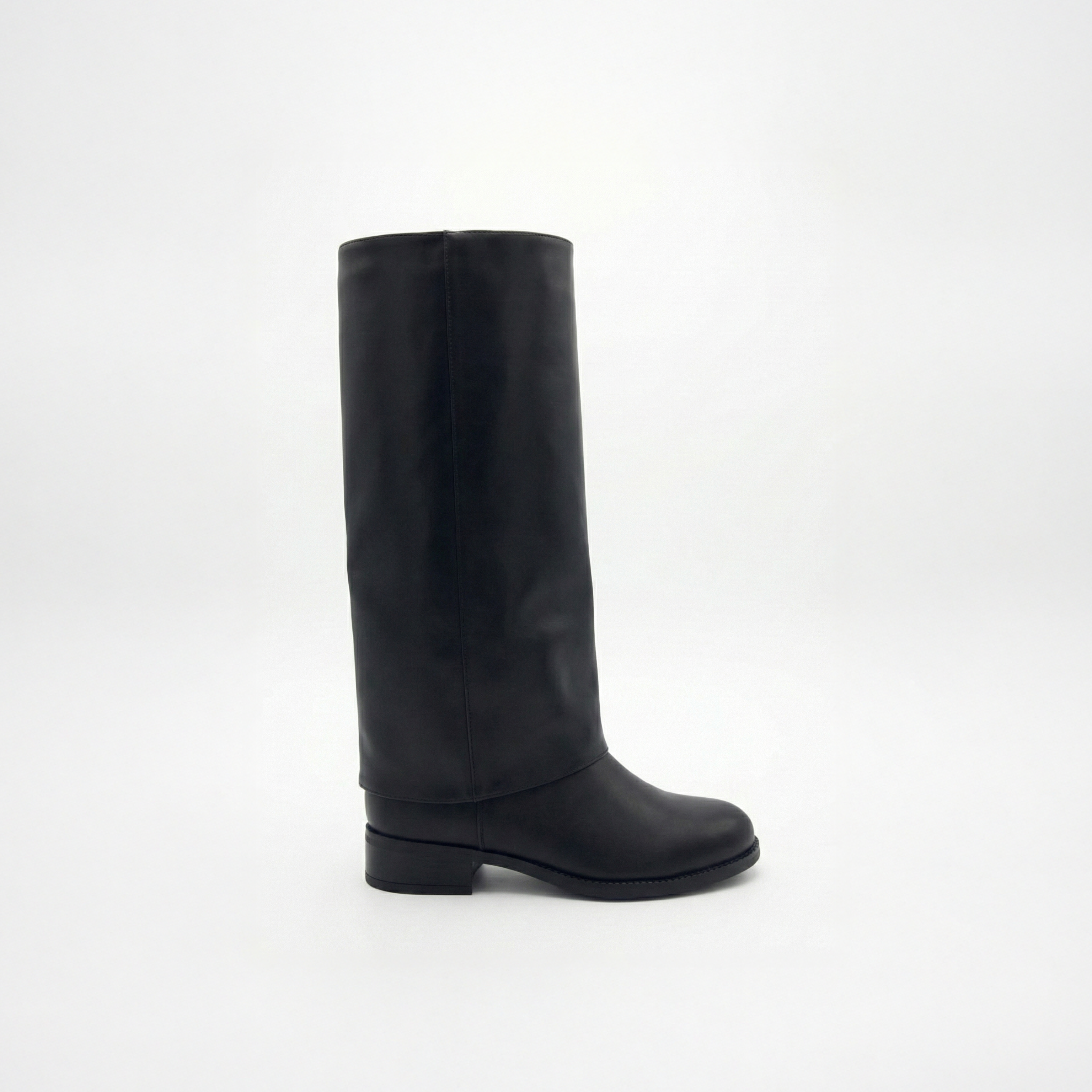 Bottes hautes noires à la ligne épurée et à la silhouette structurée. Le bout arrondi et le talon bas offrent un bon confort au quotidien. Faciles à enfiler, elles s’adaptent aussi bien à des tenues décontractées que plus habillées