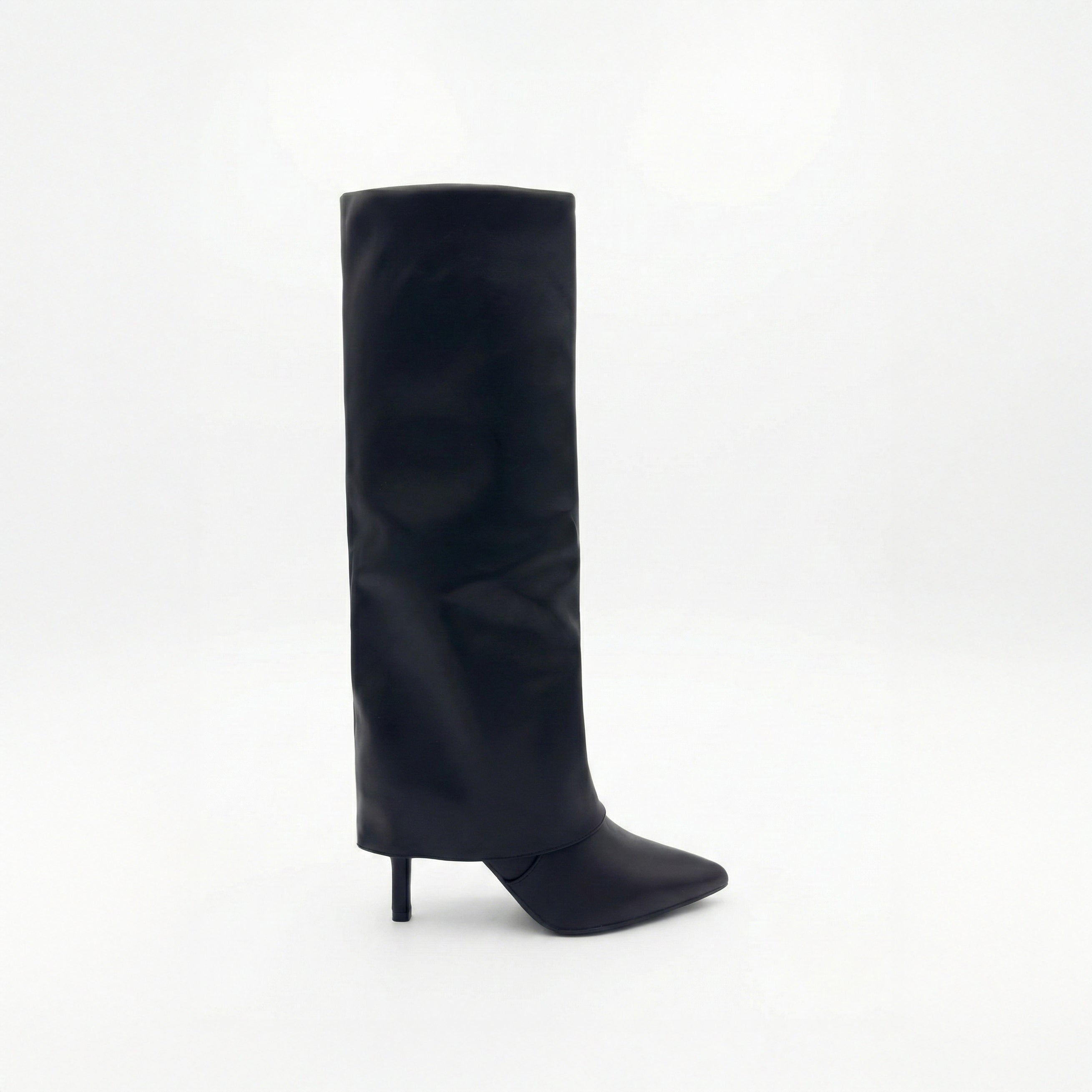 Bottes guêtres noires à la ligne épurée. Le modèle Iris est doté d’un talon aiguille de 8 cm, d’un bout pointu fermé et d’une forme facile à enfiler. Conçue en matière synthétique, elle convient à un usage quotidien.